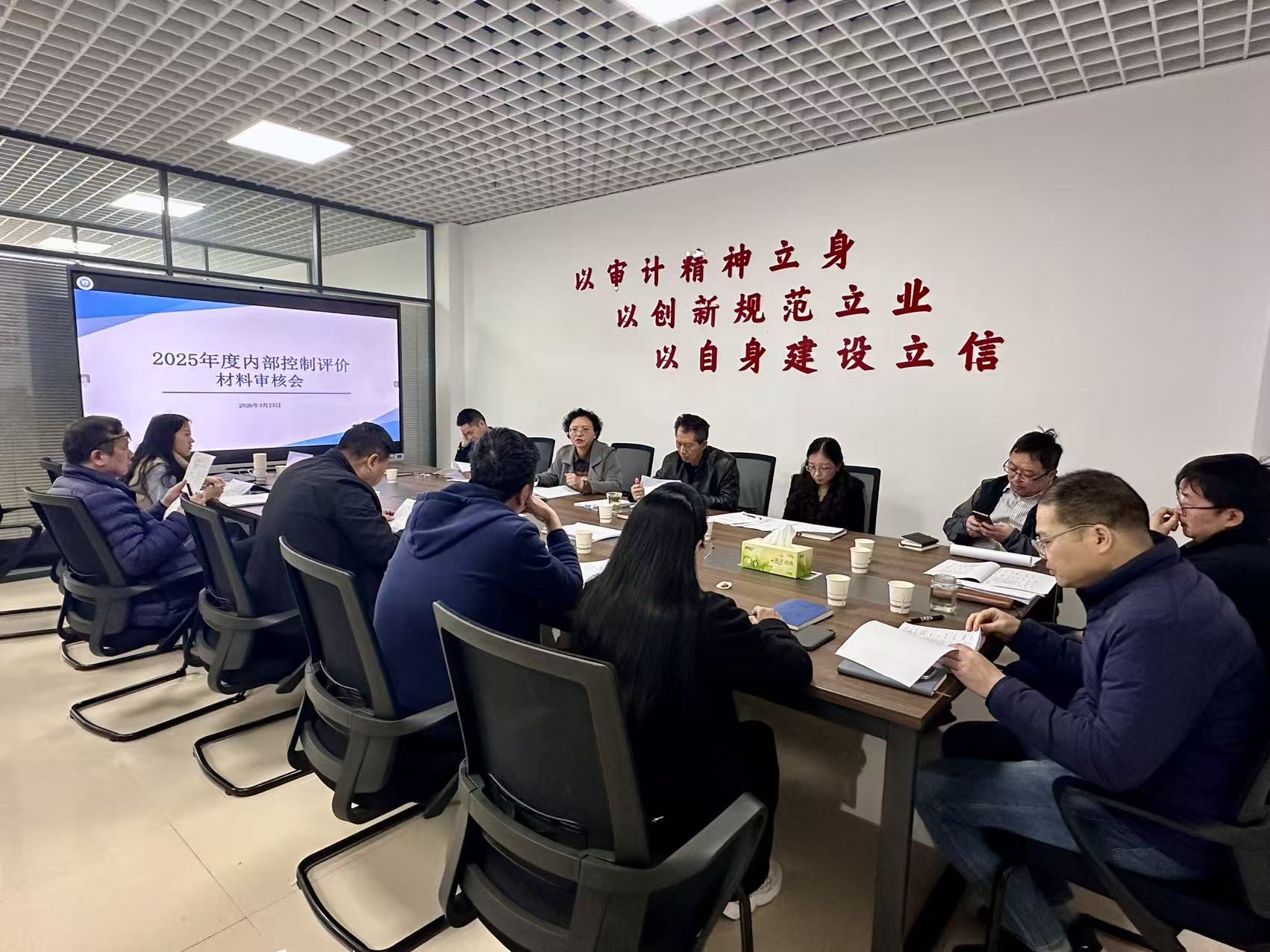 随后,各与会部门结合自身管理职责,对提交的内部控制自我评价打分及相关佐证材料,从议事决策机制、权力运行、组织架构、资产管理、预算执行、收支管理、招标采购、项目建设、合同管理等不同维度进行了多角度、交叉式的审核与研讨。此次审核重点聚焦材料内容的真实完整性、流程的合规性、风险控制的恰当性,确保了评价结果的客观准确,以及佐证材料的真实充分。