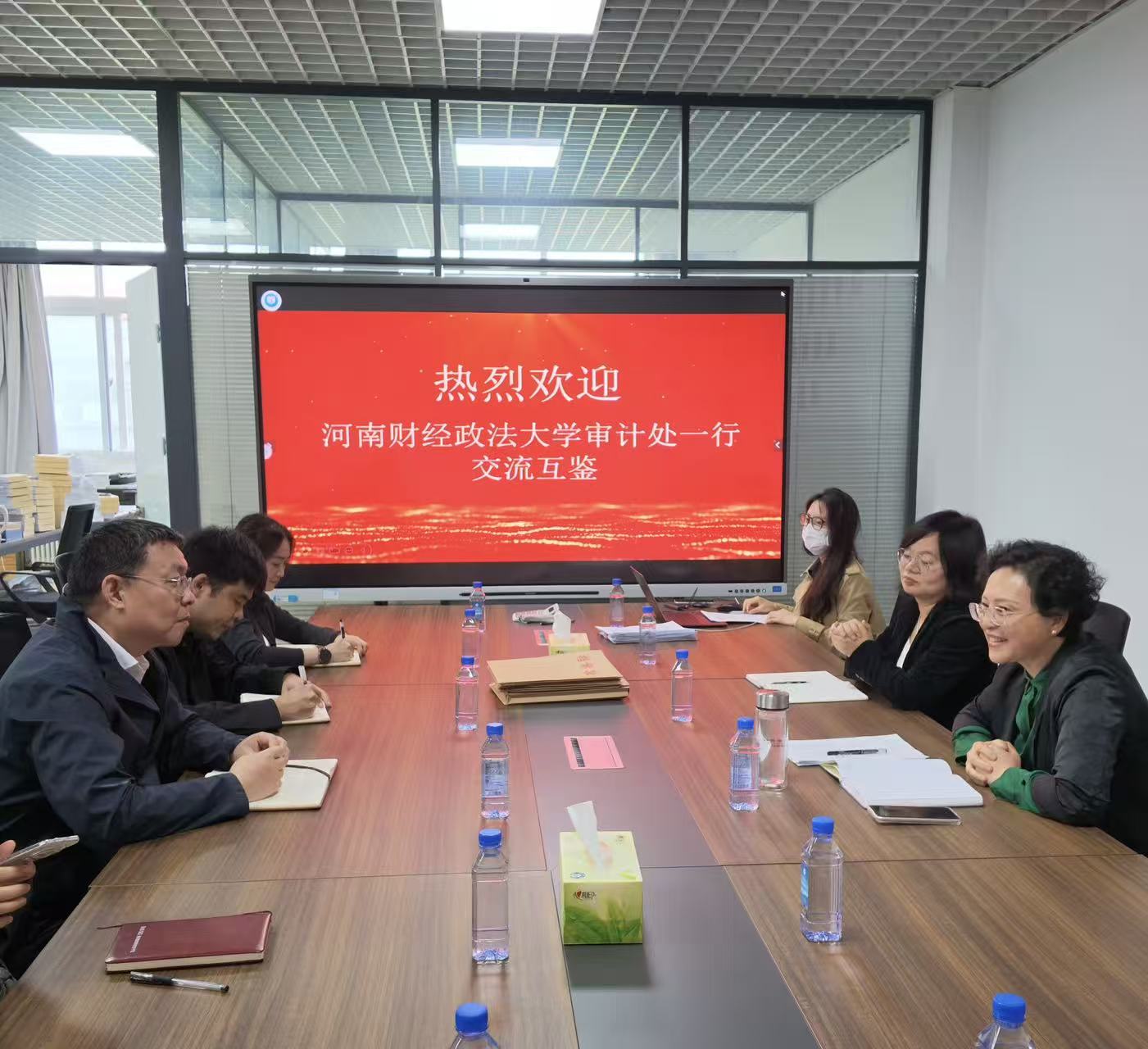 4月28月上午,河南财经政法大学审计处处长齐磊一行四人到我校审计处进行工作调研。审计处处长阮滢及审计处全体人员参加此次交流座谈会。